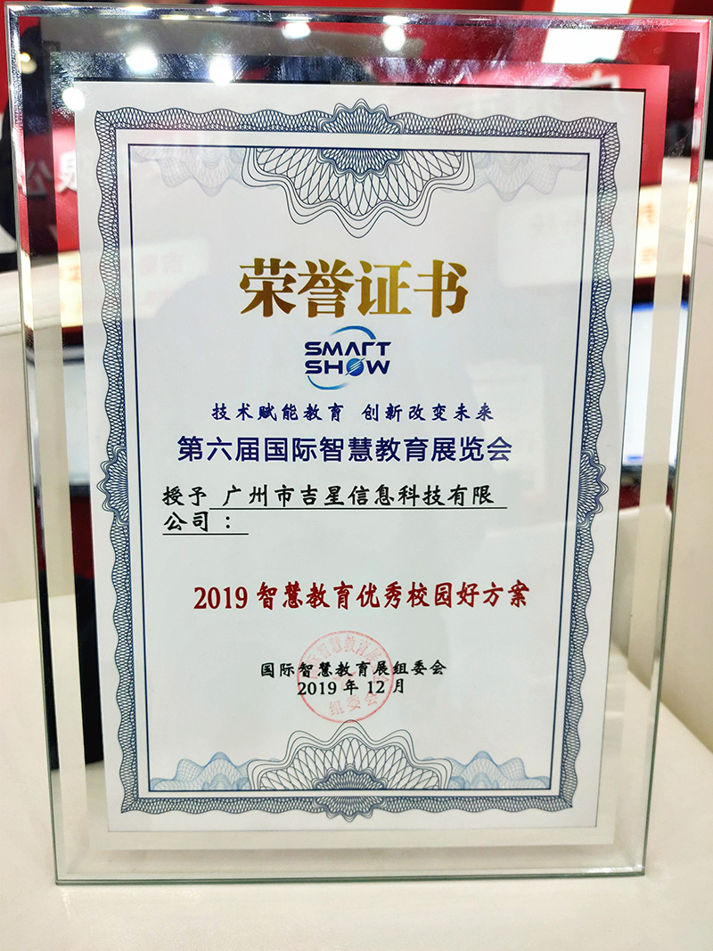 2019“校園好方案”,吉星再創佳績 發布日期:2019-12-13 “技術賦能教育、創新改變未來”,在第六屆校園好方案征集評選中,吉星憑借全互動智慧課堂方案脫穎而出,榮獲 “2019智慧校園好方案”殊榮! 第六屆國際智慧教育展聚集了國內外頂尖的智慧教育創新企業、上市公司,用教育技術賦能教育本質、用創新思維探討未來校園信息化建設之大潮所向。 頒獎現場 展望未來,吉星將繼續在教育信息化建設上不斷地探索、創新,深耕教育,不斷打磨產教融合的專業產品,力求為全國院校提供更全面、優質的信息化應用產品與專業升級服務。