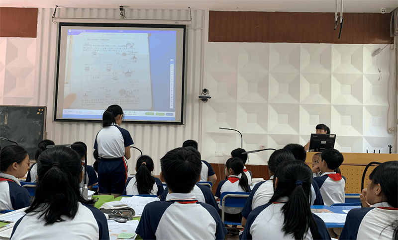 教師通過大屏展示測驗考題,將紙質試題轉化電子形式展示,節約成本的同時也能夠讓學生清晰地看到試題。學生通過按鈕進行作答,大屏實時展示答題狀況。