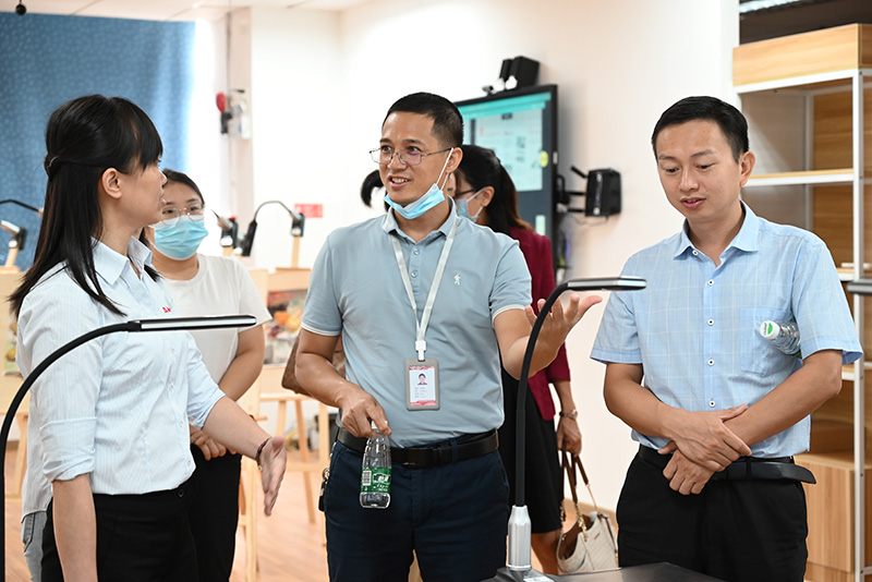 隨后,廣東嶺南職業(yè)技術(shù)學(xué)院一行領(lǐng)導(dǎo)前往了教學(xué)展區(qū)參觀,觀看了吉星無線全錄播系統(tǒng)在不同教學(xué)場景下的運行情況。