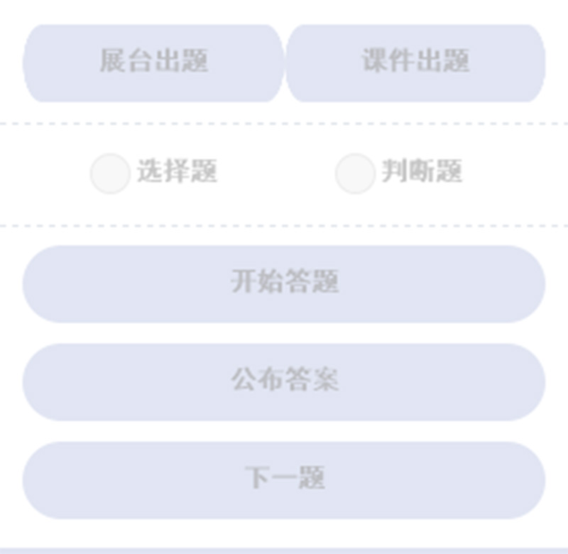 教師通過大屏展示測驗(yàn)考題,將試題轉(zhuǎn)化為電子形式展示,節(jié)約成本的同時(shí)也能夠讓學(xué)生清晰地看到試題。學(xué)生通過按鈕進(jìn)行作答,大屏實(shí)時(shí)展示答題狀況。