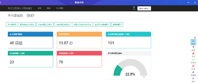 另外,試想一下,在課堂測驗(yàn)中老師如果可以及時(shí)看到學(xué)生在每一道題目正確率和數(shù)據(jù)統(tǒng)計(jì),在接下來的講解中就會(huì)更有側(cè)重點(diǎn),對于學(xué)生學(xué)習(xí)情況的掌握也會(huì)更清楚。