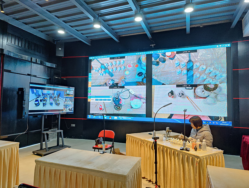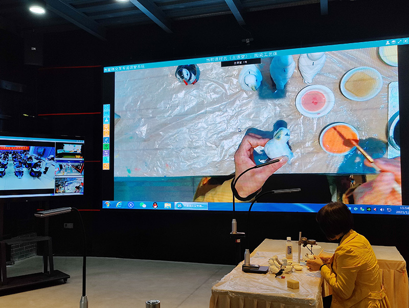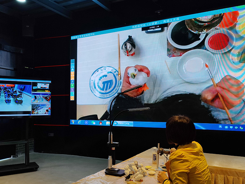 在上課過程,教師調取學生對陶瓷的上色過程,通過設備,教師能夠看到學生的細微操作,及時作出指導和修正,幫助學生更好掌握傳統技藝。而學生也可以及時提問,解決在技藝學習中的疑問。
